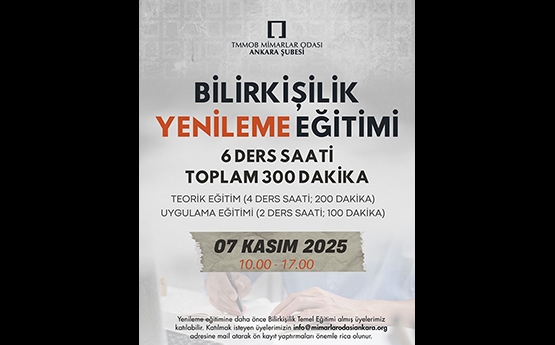 Adres : Konur Sokak 4/3 06420 Yenişehir / Ankara • E-posta : info@mimarlarodasiankara.org Telefon : 0 312 4178665 • Faks : 0 312 4171804 • GSM Santral : 0 533 4777967 |